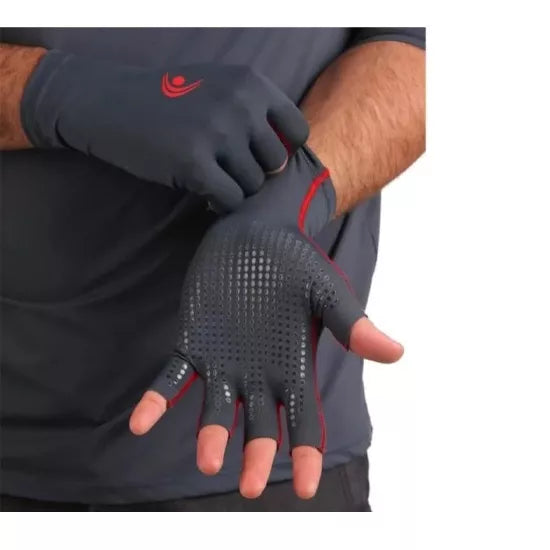Luva projetada para proteção e conforto para esportes ao ar livre . Na palma da mão possui uma aplicação de bolinhas de silicone que além de melhorar a resistência proporciona a aderência necessária para a prática de esportes mesmo estando molhada.